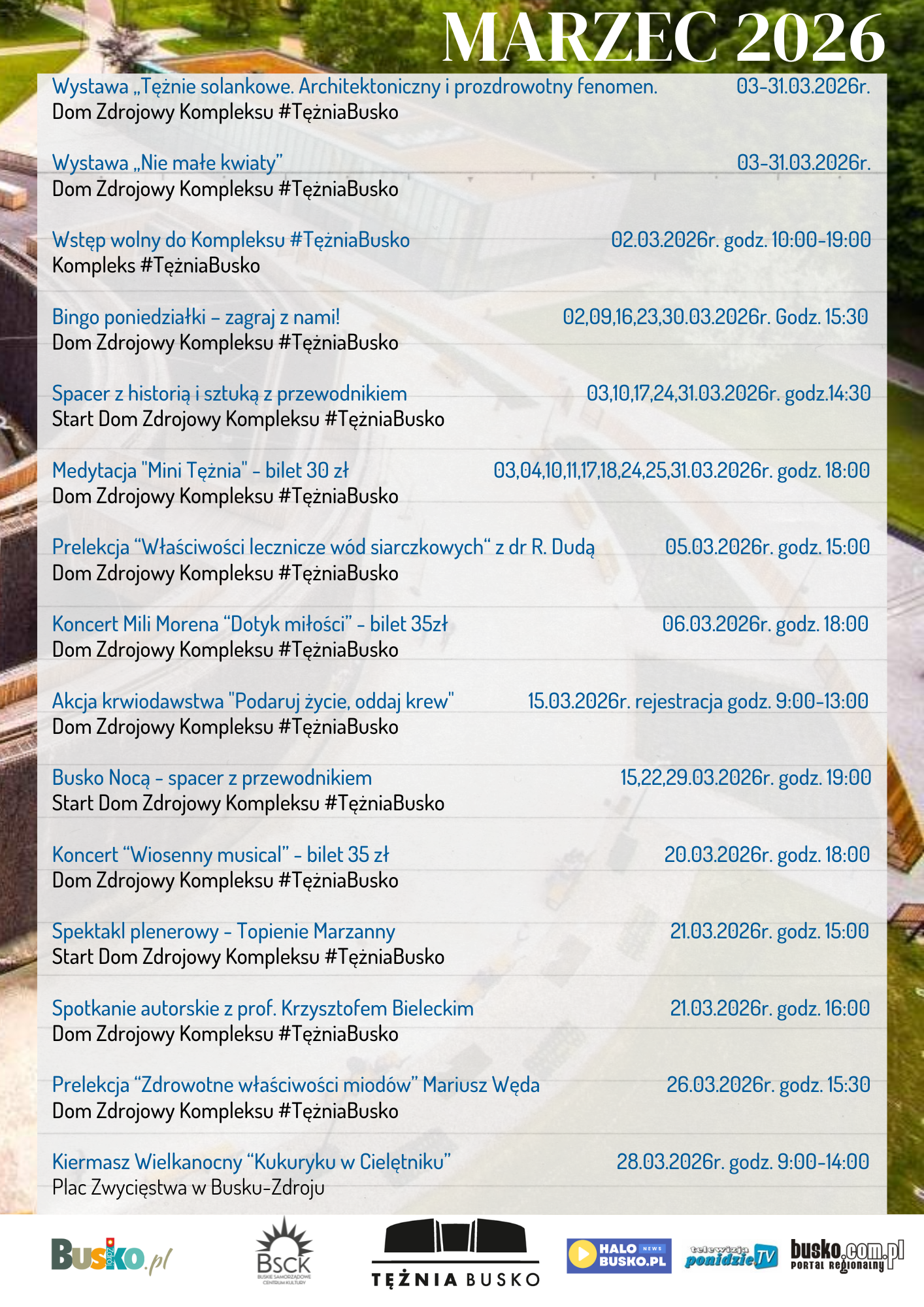 Zapraszamy do kompleksu #TężniaBusko na poniższe wydarzenia: