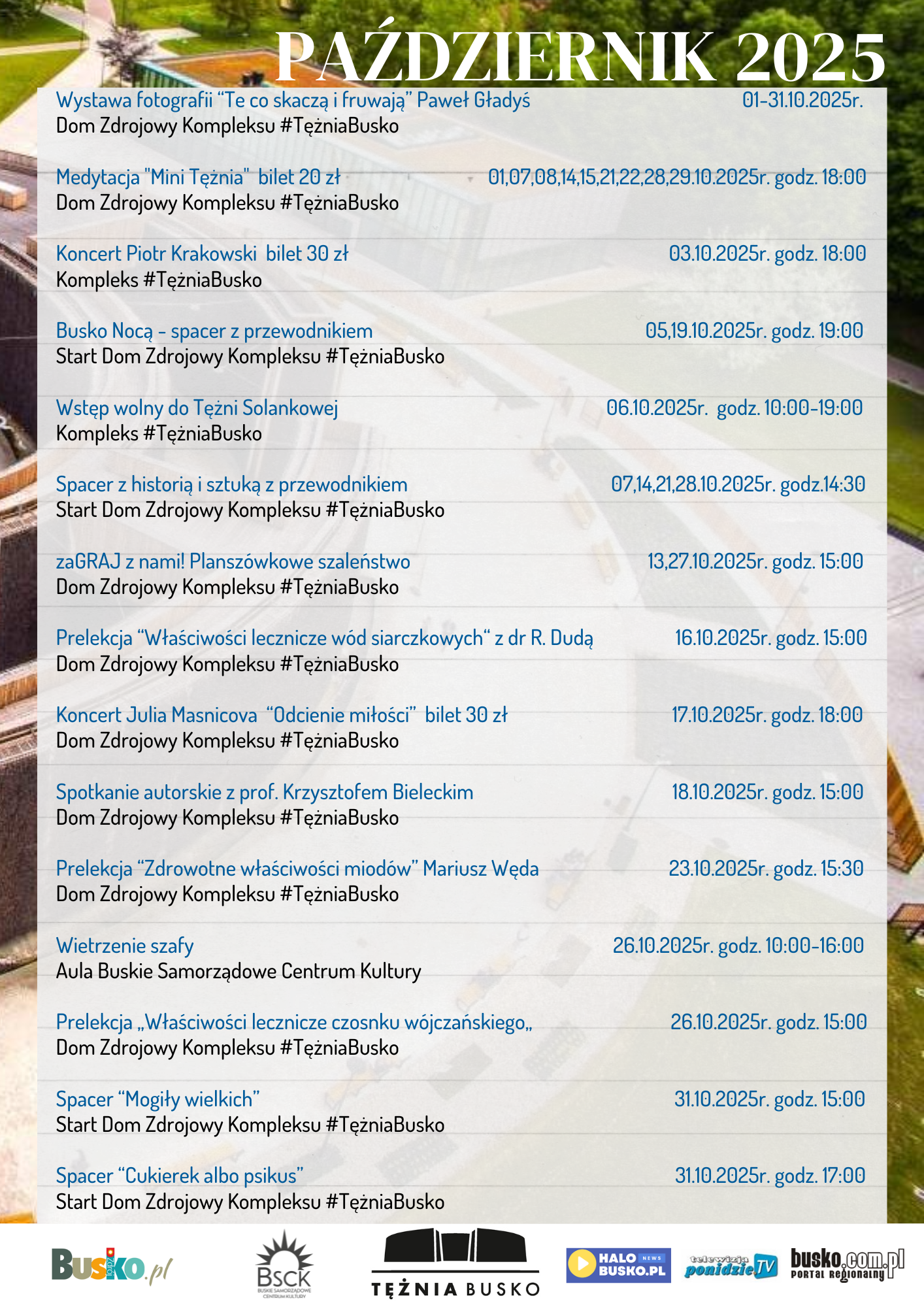 Terminarz wydarzeń w październiku Kompleks #TężniaBusko